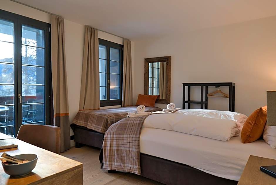 Fully renovated room with wooden furniture, box-spring bed, balcony, mountain views and some of them come with a private bathroom.